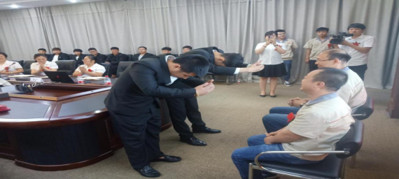 图3哈尔滨红光锅炉集团徐燕总经理与学生共同参加现代学徒制三方签约仪式