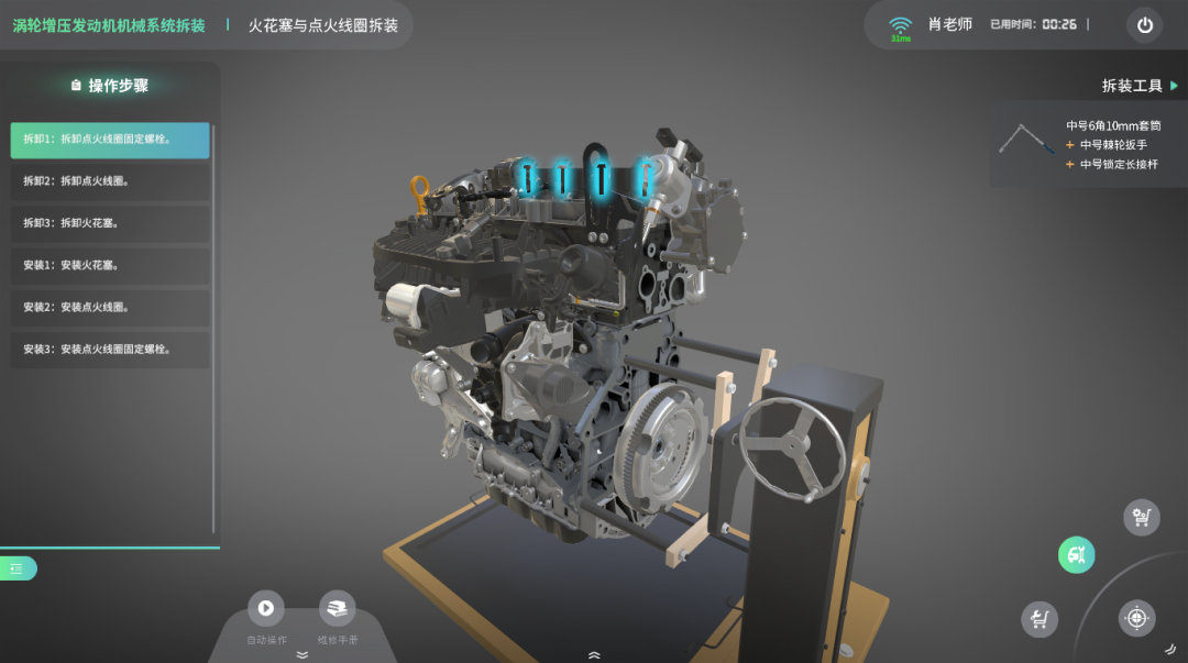 赛项包含了:虚拟仿真实验项目包含四个项目虚拟拆装比赛纯电动汽车动力系统虚拟拆装台(适用于比亚迪E5)、传统汽车动力系统虚拟拆装台(大众EA888三代1.8TSI)、纯电动汽车动力系统虚拟故障诊断车(适用于比亚迪E5)、传统汽车动力系统虚拟故障诊断车(大众EA888二代2.0TSI),其中虚拟拆装赛项共计50分钟,虚拟故障诊断赛项共计60分钟。
