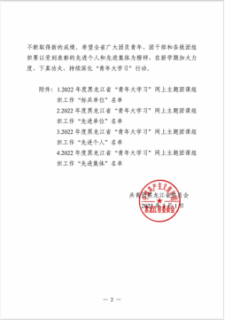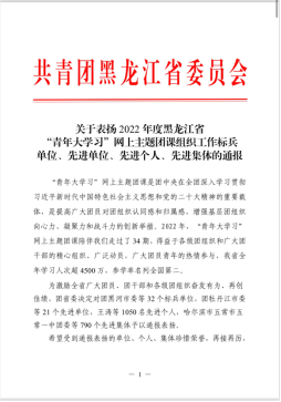 2023年3月1日,汽车与动力学院团总支在分院全体学管干部的共同努力下荣获 2022年度黑龙江省“青年大学习”网上主题团课组织工作“先进集体”。