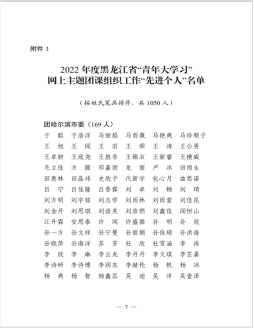 我院团总支书记唐志勇、团总支学生副书记郝志丛,荣获2022年度黑龙江省“青年大学习”网上主题团课组织工作“先进个人”荣誉称号。