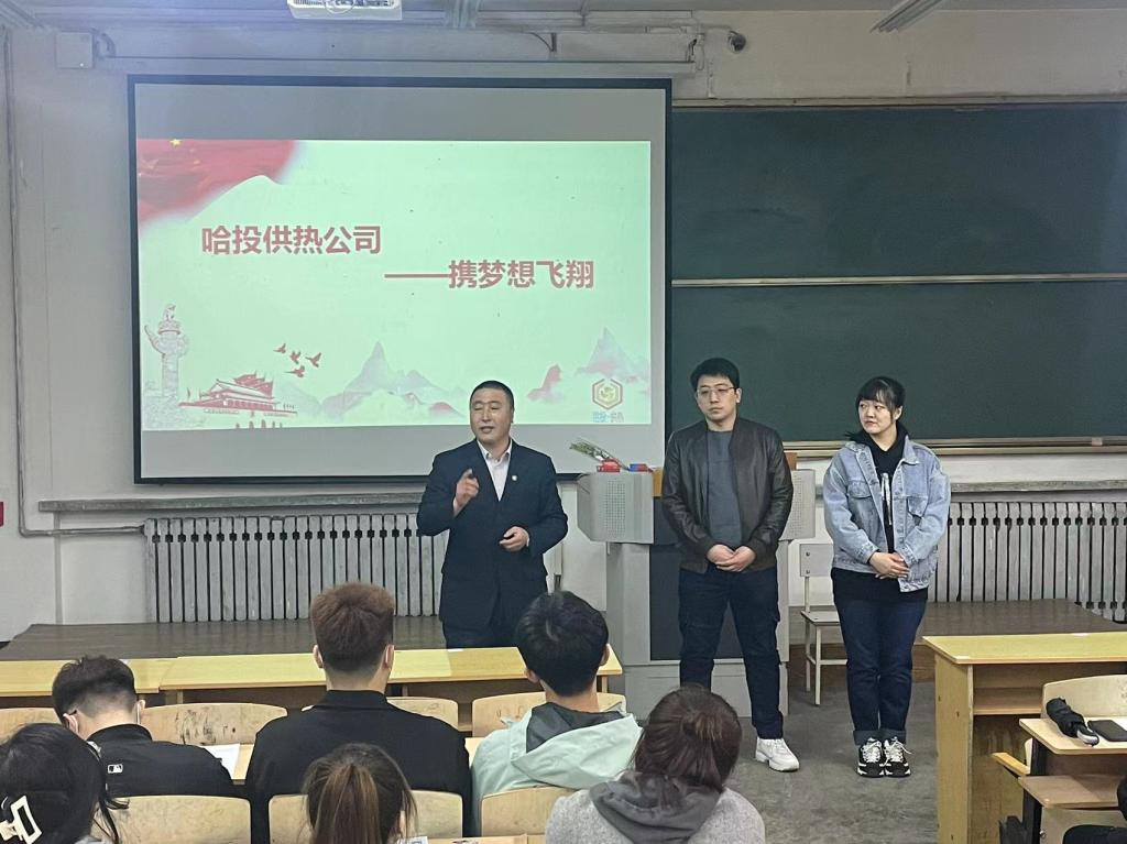 哈尔滨哈投投资股份有限公司供热公司人力资源部经理杨汉伦介绍了龙职2018级、2019级、2020级热能专业优秀毕业生张宇哲、娄昊、曹然、杨奇阁在供热公司吃苦耐劳、服从管理、工作突出、业绩显著,感谢专业培养适合企业发展的高端技术技能人才。杨汉伦表示近年来根据公司的发展需要,企业急需一批高端技术技能人才,希望以本次校企合作、学生就业为契机建立长效合作机制。