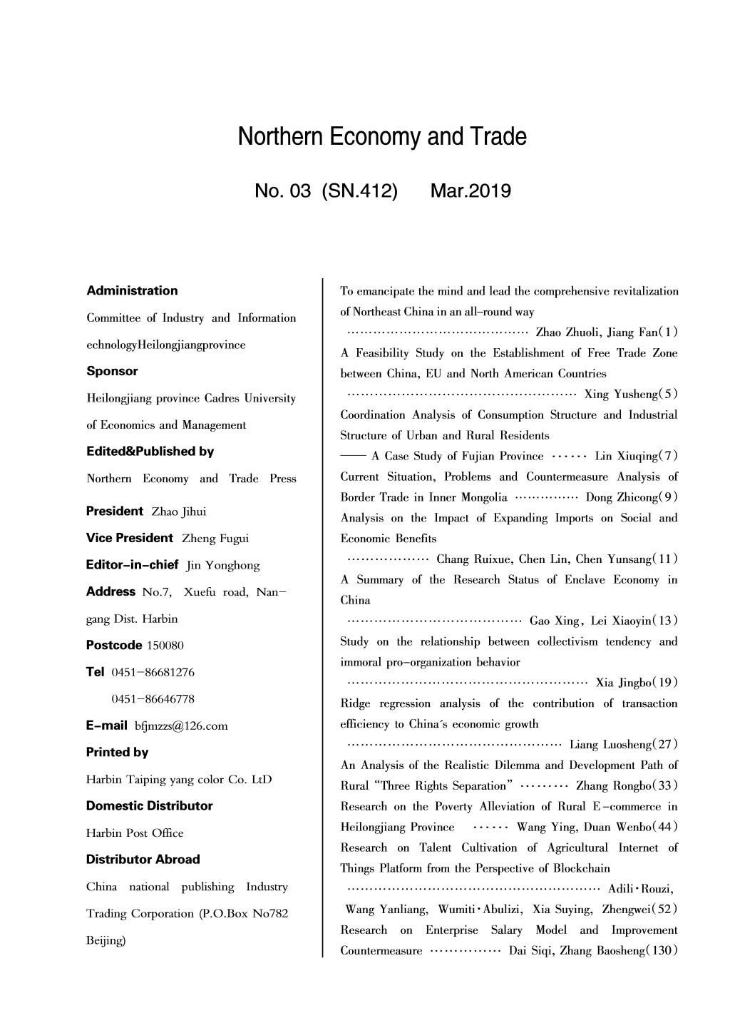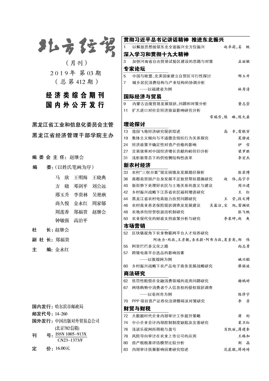 版权所有:北方经贸杂志社 地址:黑龙江省哈尔滨市南岗区学府路5号 邮编150080 电话:0451-86681276 86646778 邮箱:bfjmzzs@126.com