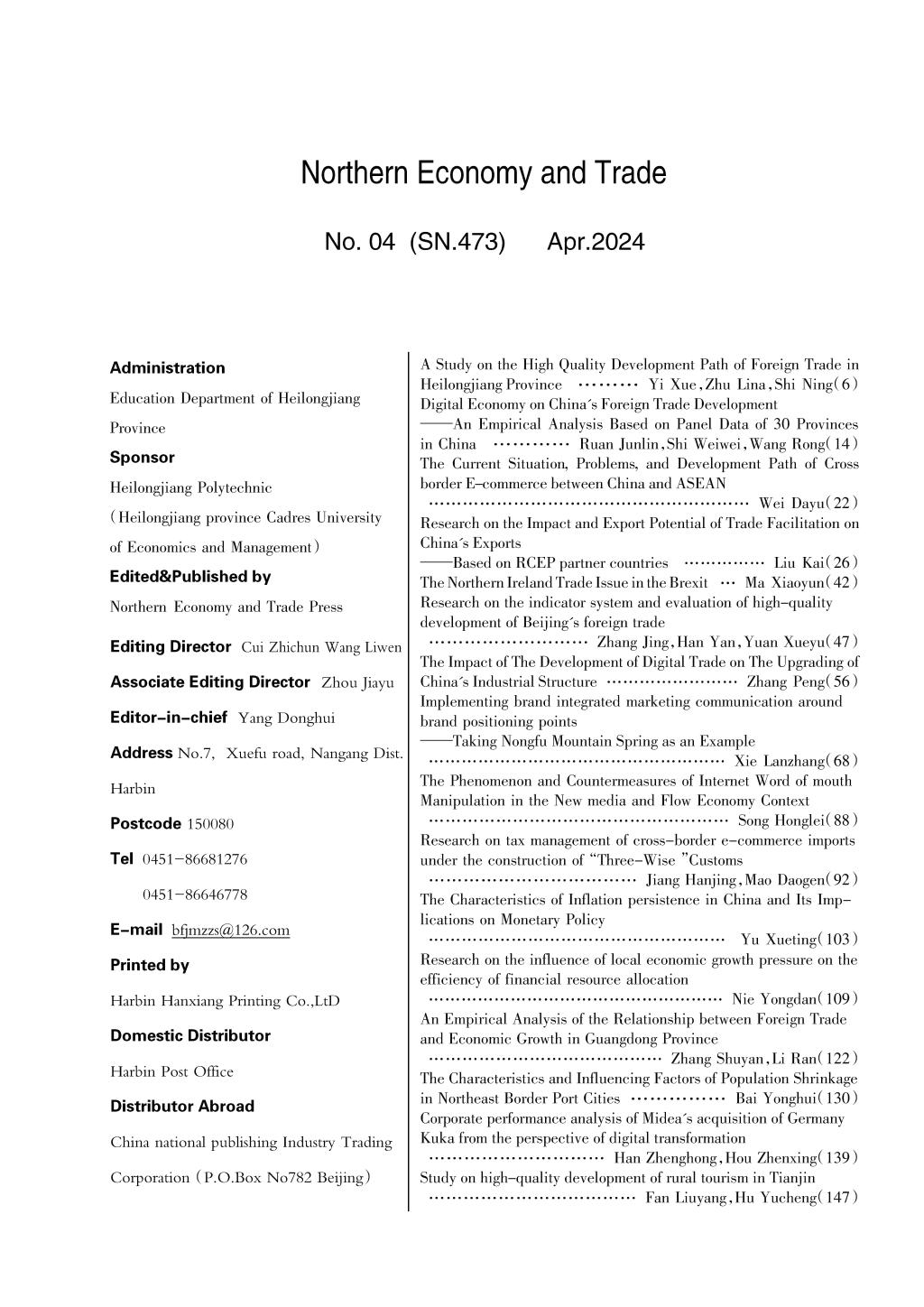 版权所有:北方经贸杂志社 地址:黑龙江省哈尔滨市南岗区学府路5号 邮编150080 电话:0451-86681276 86646778 邮箱:bfjmzzs@126.com