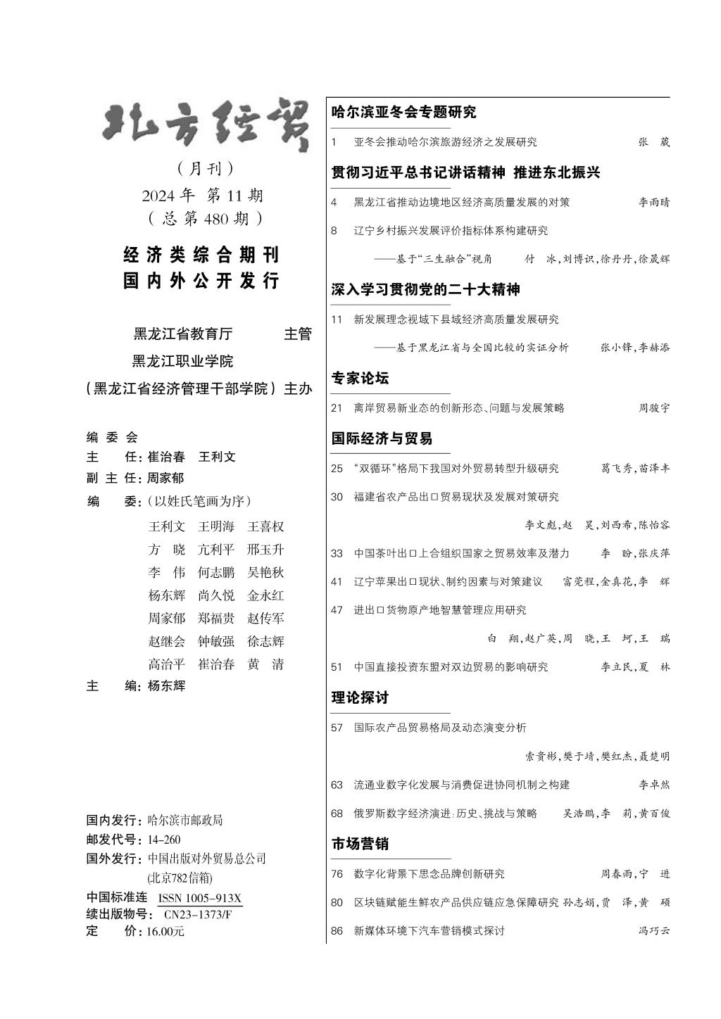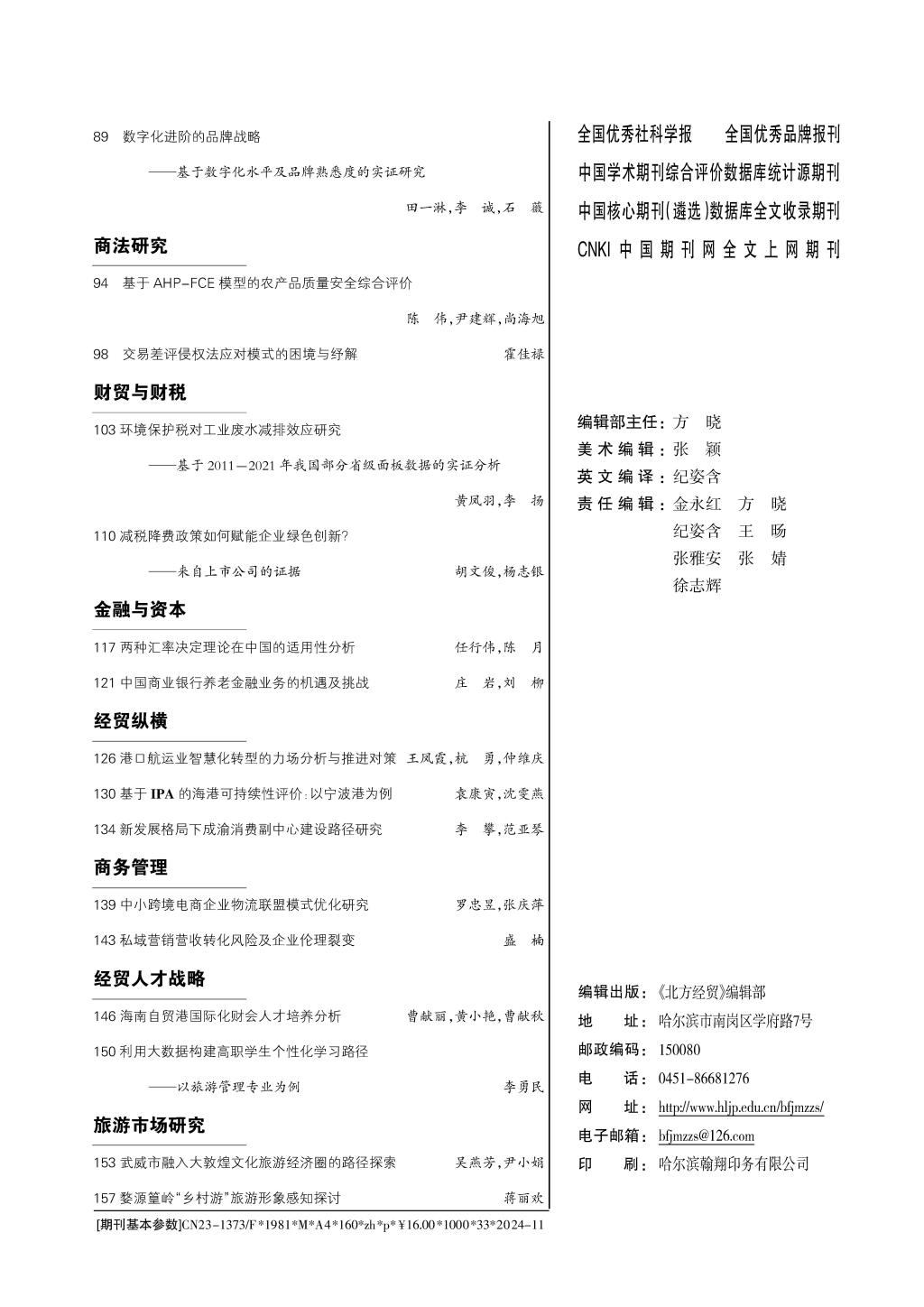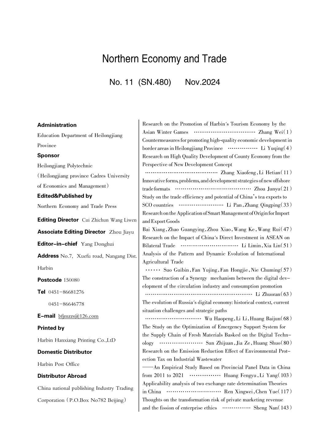 版权所有:北方经贸杂志社 地址:黑龙江省哈尔滨市南岗区学府路5号 邮编150080 电话:0451-86681276 86646778 邮箱:bfjmzzs@126.com