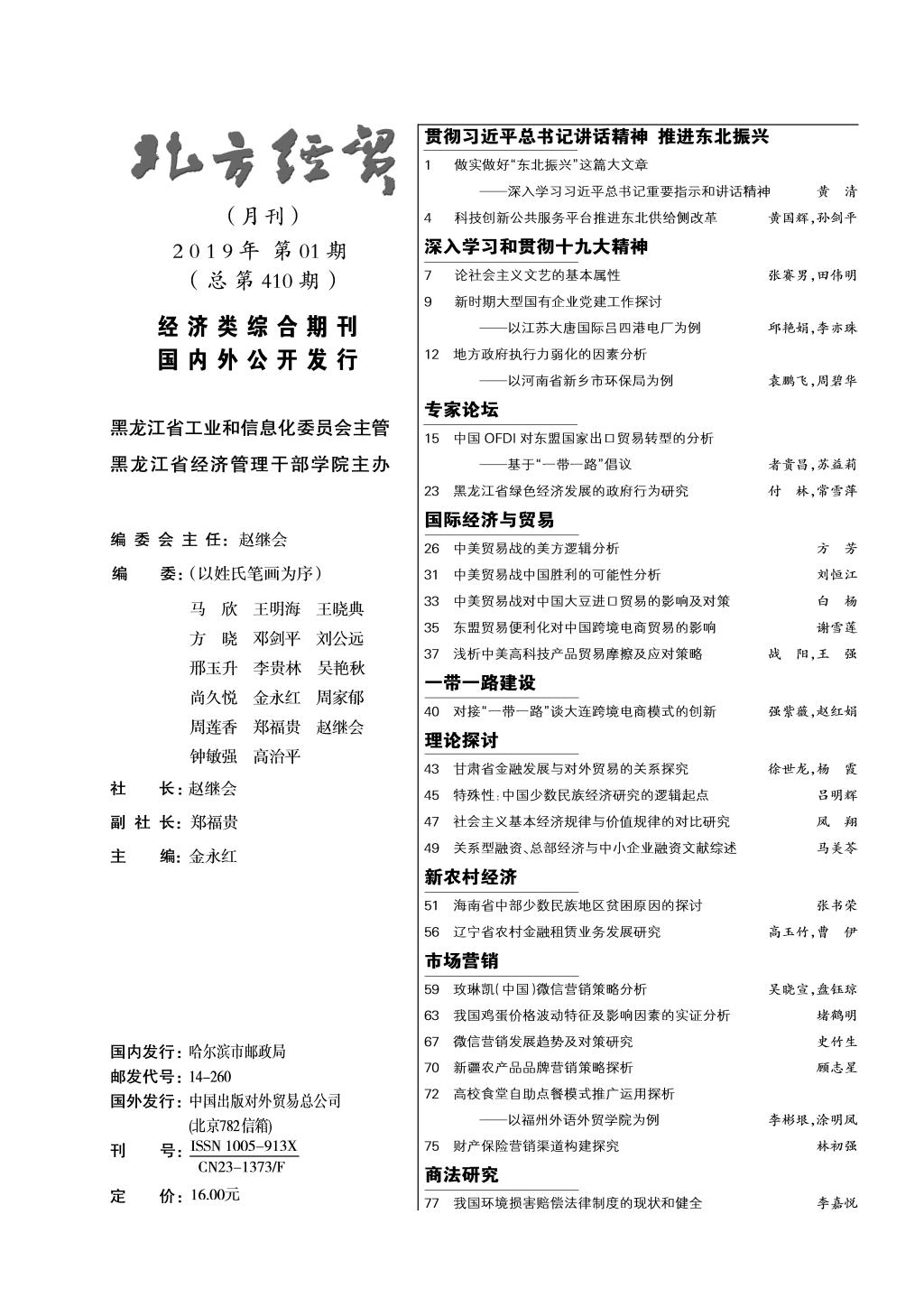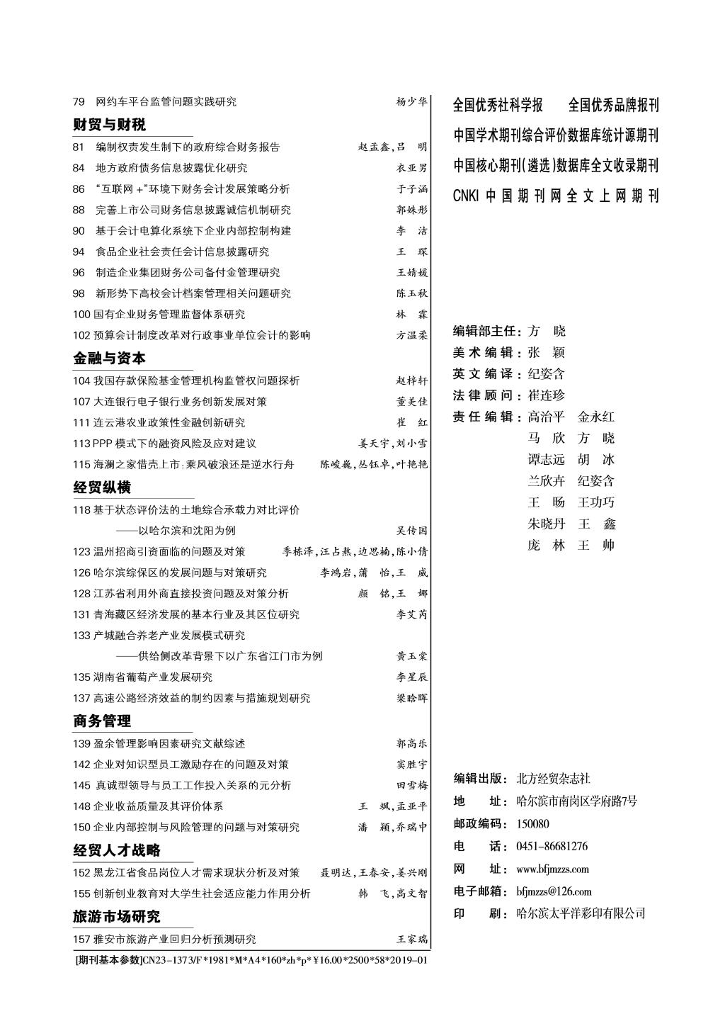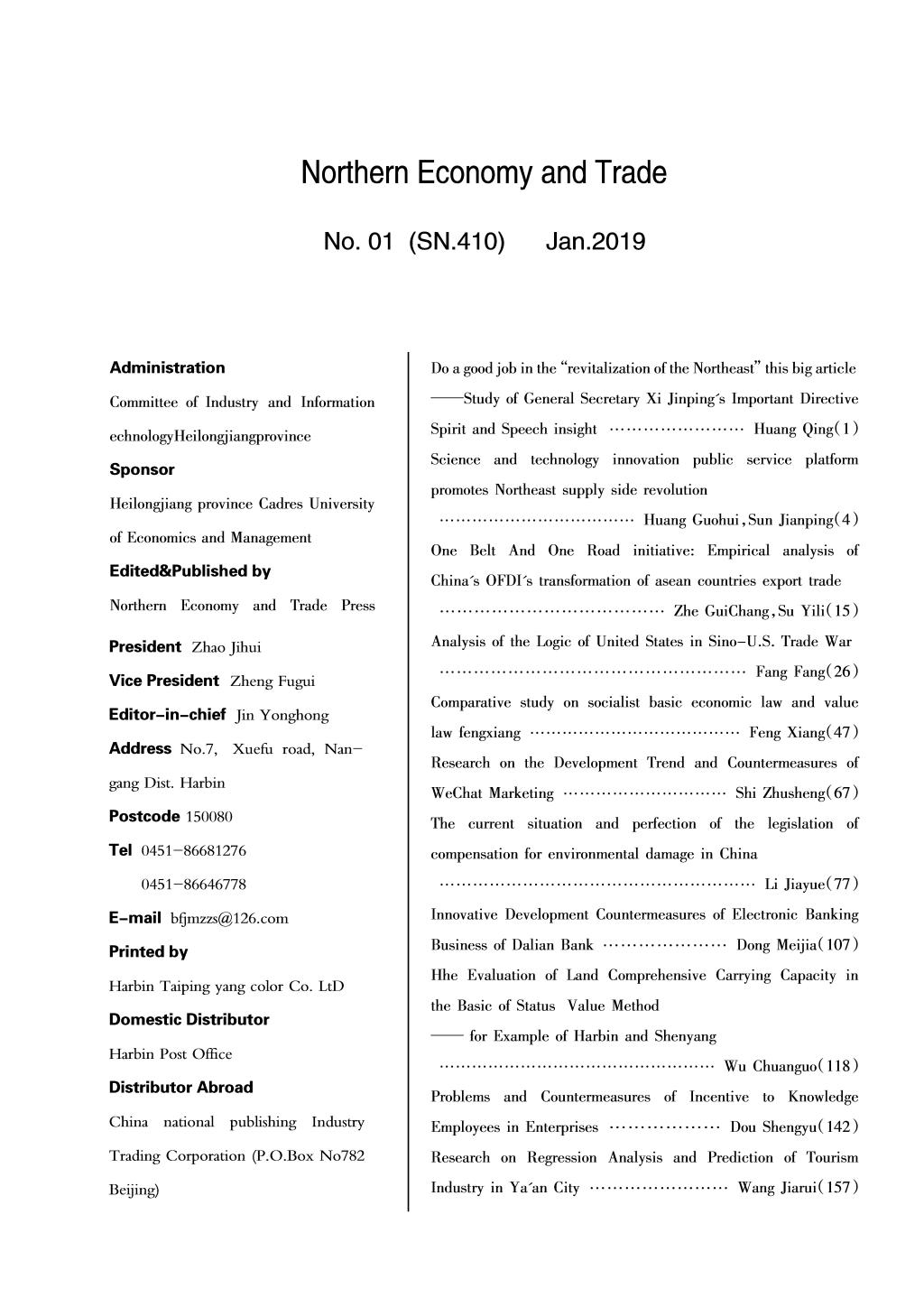 版权所有:北方经贸杂志社 地址:黑龙江省哈尔滨市南岗区学府路5号 邮编150080 电话:0451-86681276 86646778 邮箱:bfjmzzs@126.com