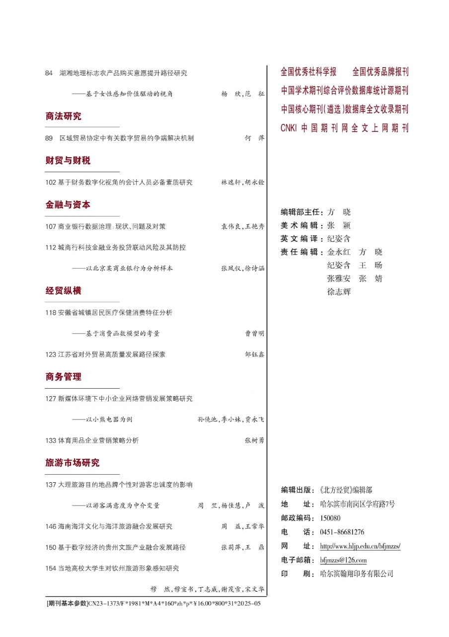 版权所有:北方经贸杂志社 地址:黑龙江省哈尔滨市南岗区学府路5号 邮编150080 电话:0451-86681276 86646778 邮箱:bfjmzzs@126.com