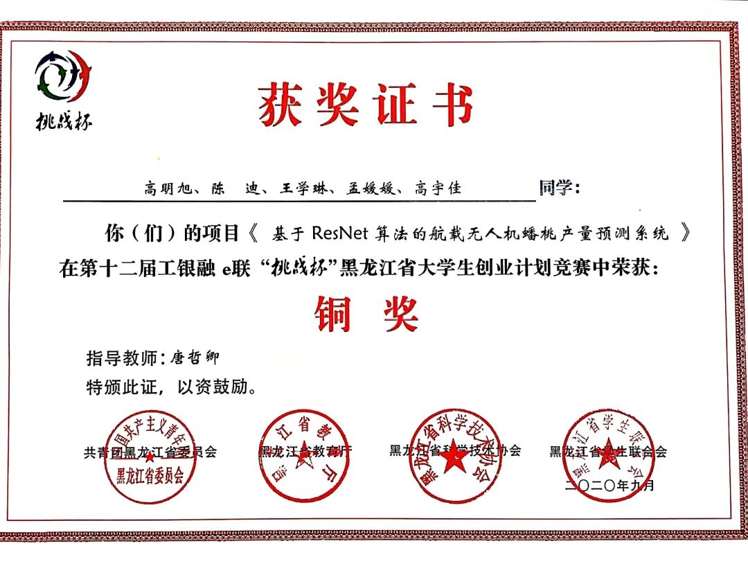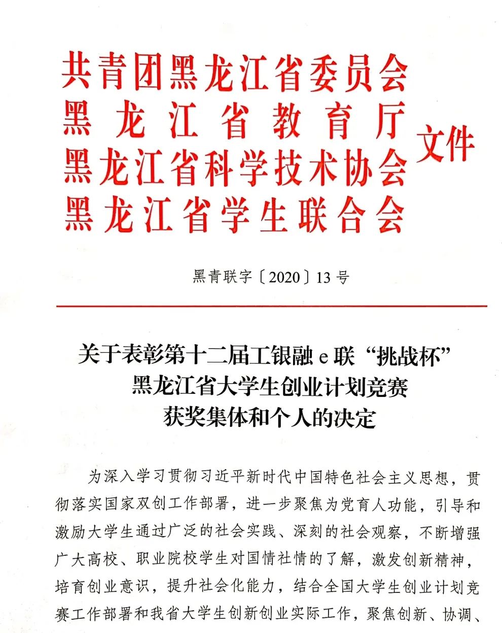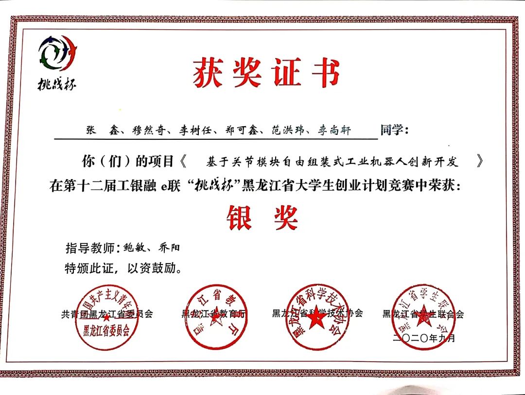 9月8日,团省委、省教育厅、省科学技术协会、省学生联合会联合印发了《关于表彰第十二届工银融e联“挑战杯”黑龙江省大学生创业计划竞赛获奖集体和个人的决定》(黑青联字[2020]13号)文件,在全省各高校209件作品入围决赛的作品中,金年会参赛项目荣获大赛金奖4项、银奖2项、铜奖3项,有3项作品被推荐至国赛,由机械工程学院潘胤卓老师指导、肖童同学负责的《小型除冰机器人》项目以总票数排名第一的成绩荣获“最佳人气奖”,金年会荣膺大赛“优胜杯”,创造了金年会“挑战杯”参赛史最佳成绩。