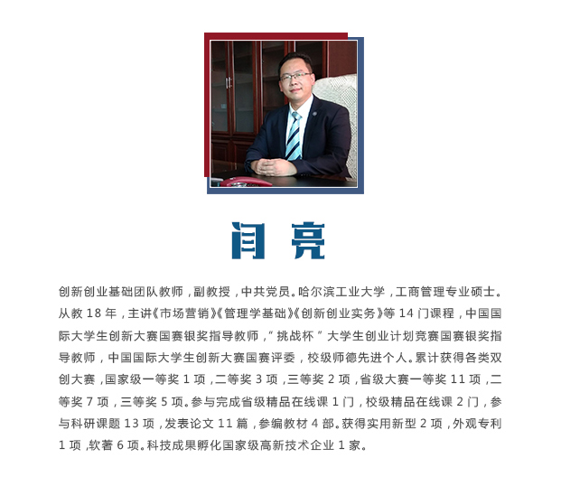 团队教师主持和参与了国家级省级多项课题,编写的《创新创业实务》教材已在高等教育出版社出版,现已建成校级在线精品课程。在教学竞赛方面,团队荣获省级教学能力大赛公共基础组二等奖。在指导学生参加创新创业大赛方面,团队教师带领学生在全国及黑龙江省多项大学生创新大赛中斩获佳绩。这些成绩不仅为学校赢得了荣誉,也为学生的全面发展和创新创业能力的提升奠定了坚实基础。