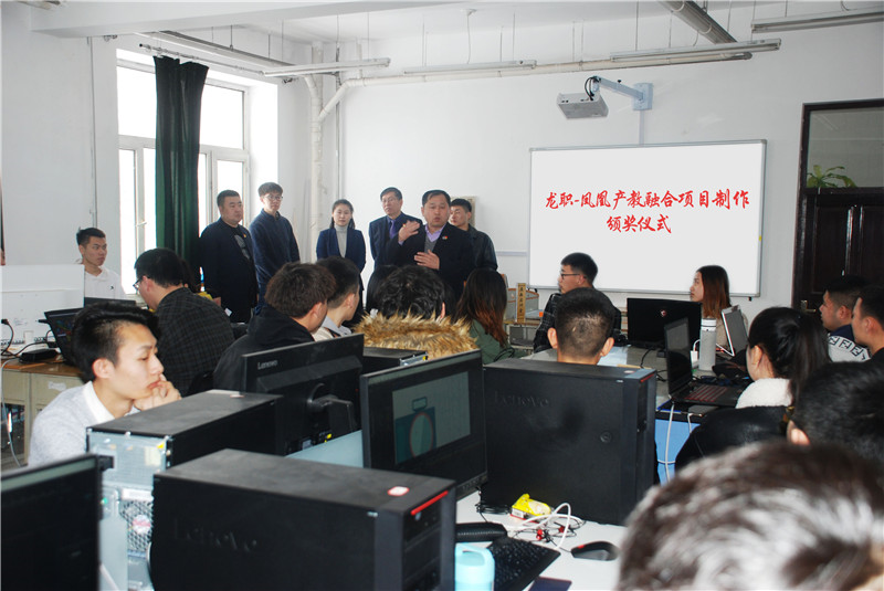 3月13日,龙职凤凰产教融合项目制作颁奖仪式在信息工程学院举行。凤凰卫视集团凤凰教育东北区总经理张宇、信息工程学院党总支书记王文焕、院长金忠伟、动漫制作技术专业教研室主任于雪梅、凤凰指导教师姚海龙参加颁奖仪式。