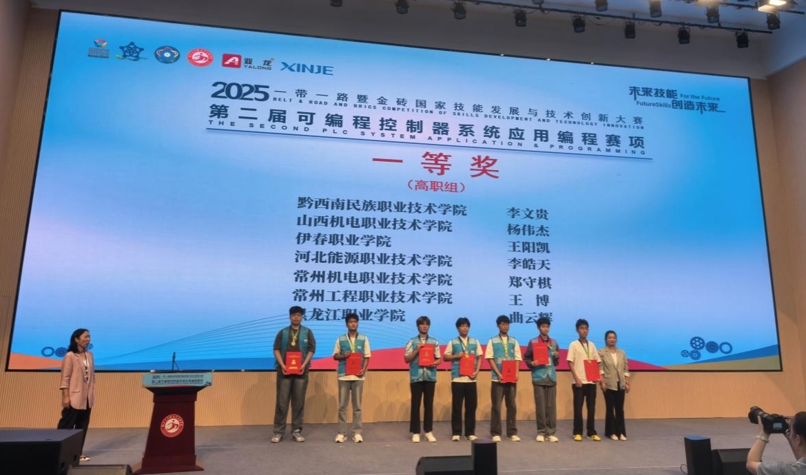 金秋时节,喜报频传。智能制造技术学院在2025年“一带一路”暨金砖国家技能发展与技术创新大赛第二届可编程控制器系统应用编程、第二届工业互联网集成应用两个赛项再填两枚金奖。