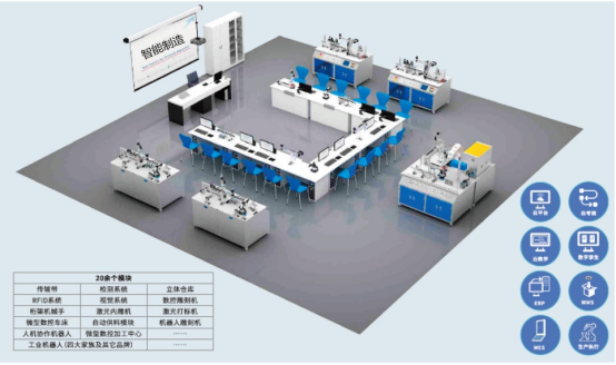 该实训装置以智能制造技术为核心,以智慧工厂为基础,以实体工件(书签、水晶U盘)为载体,以真实演练为目的,以角色扮演为手段,致力于提升学生的参与度与实践体验,体现了现代化智慧工厂、智能制造、智能装备、智能服务、工业软件以及工业互联网等关键技术标准体系。
