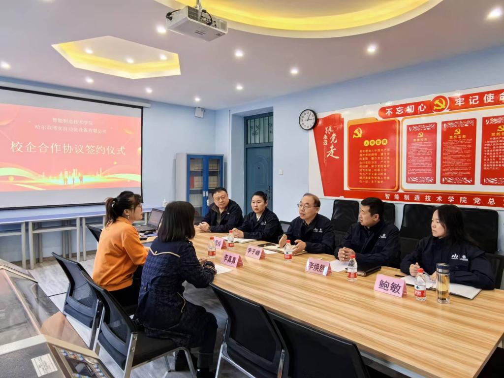 10月13日下午,智能制造技术学院院长李子峰、党总支副书记李焕然、教学副院长于雪梅、鲍敏在jinnian金年会工坊楼会见了哈尔滨博实自动化设备有限公司人力资源部长李真真,业务经理杨振雪。双方就加入产教融合共同体、学生顶岗实习、党建合作等事宜达成了意向。