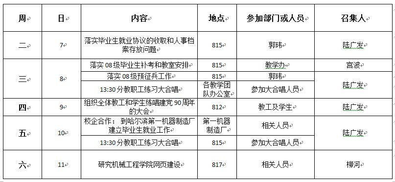 机械工程学院第十五周工作安排表