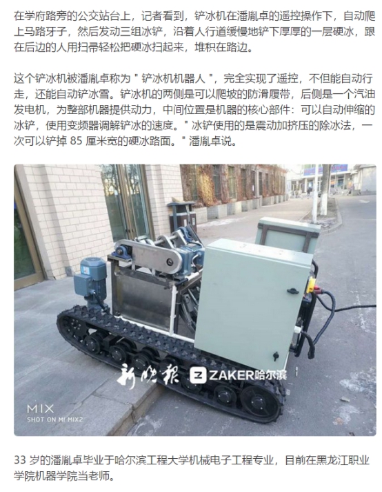 为解决冬季人行道结冰路滑,清冰工作量大、条件艰苦的难题,为践行创新型国家发展战略和中国制造2025国家