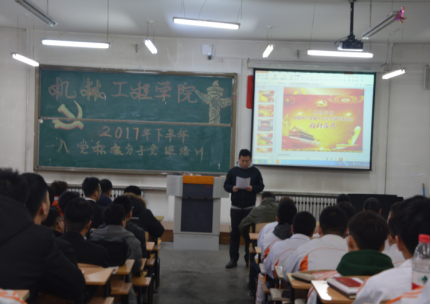 为了提升大学新生对党的认识,深入贯彻落实十九大“习近平新时代中国特色社会主义思想是全党全国人民为实现中华民族伟大复兴而奋斗的行动指南”的会议精神,提升学生的爱国意识并培养爱国情怀,机械工程学院应学校要求,于年12月12日在主楼西J402召开了为期一天的新生入党积极分子党课活动。