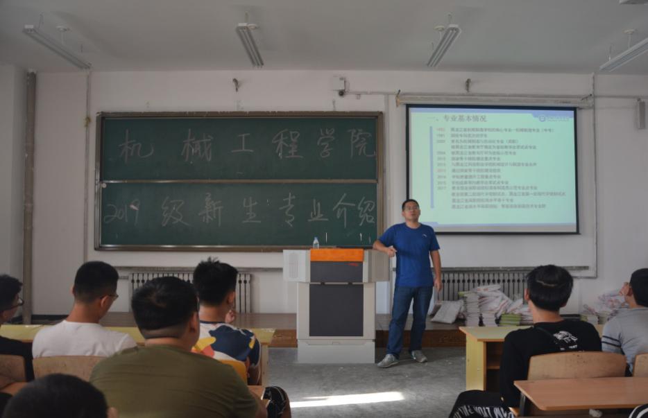 机械制造与自动化专业的见面会还邀请了合作企业哈尔滨东安实业发展有限公司人力资源部张学峰副部长为新生们介绍了龙江航空制造企业的发展状况以及东安实业公司与金年会开展现代学徒制的情况,他热烈欢迎19级新同学有机会到企业进行参观学习,并邀请有志为龙江航空制造业奋斗的学生进入学徒制试点班学习。