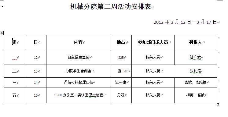 机械工程分院第二周重点工作推进表