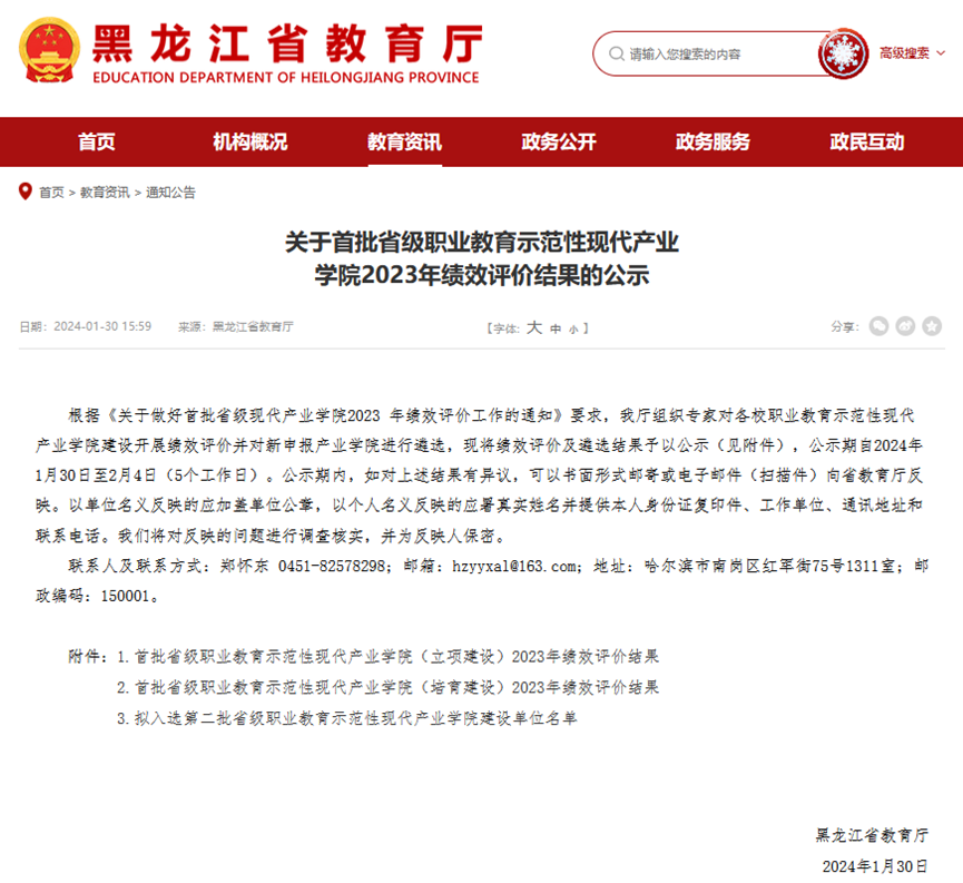 近日,金年会智能制造现代产业学院经过黑龙江省教育厅遴选,获批立项第二批省级职业教育示范性现代产业学院建设单位。