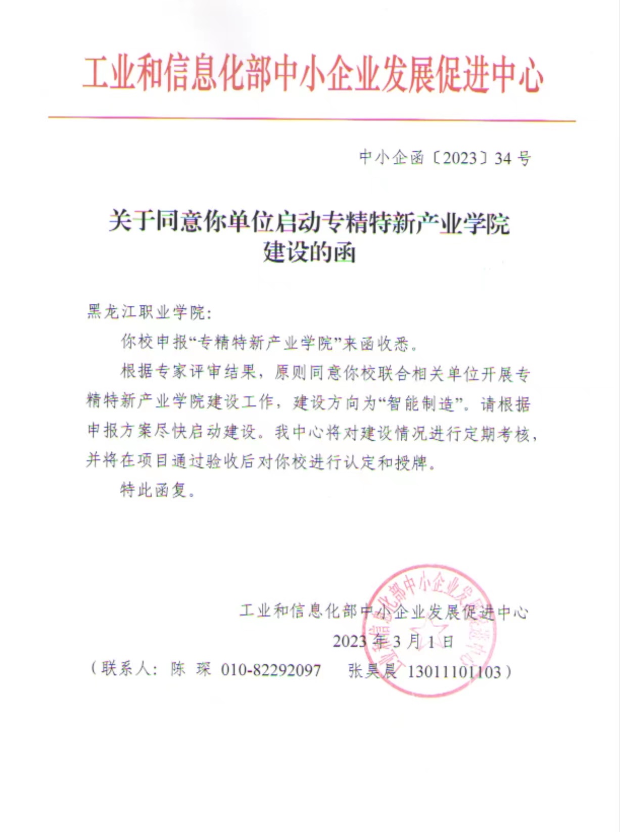 此次申报工作,学校党委高度重视,校领导全程指导,科研与校企合作处、学校办公室给予政策和文件辅导。根据《专精特新产业学院建设指南(试行)》要求,智能制造技术学院联合专精特新企业哈工大机器人创新中心有限公司、黑龙江省中小企业发展服务中心和黑龙江省中小企业协会共同申报“jinnian金年会智能制造专精特新产业学院”。