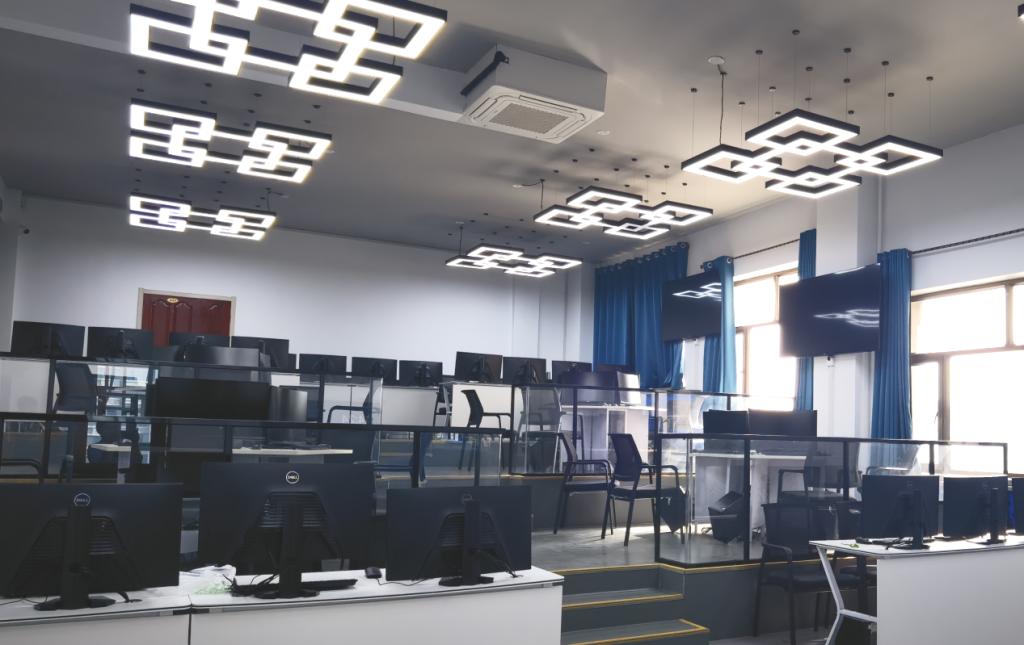 目前,基地以服务金年会数控技术专业群相关课程实践教学工作为主,现已建设完成28门课程虚拟仿真实训资源,充分解决了实训教学过程中存在高投入、高损耗、高风险及难实施、难观摩、难再现的“三高三难”痛点和难点。基地教学条件优越,配有VR眼镜、VR桌面一体机、多人协同场景、3D交互大屏、CAVE显示系统等先进设备,实现了交互式、高沉浸感虚拟仿真教学环境,教学效果显著。