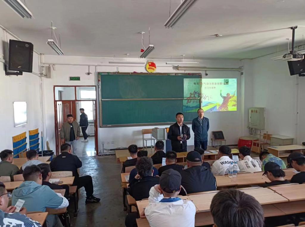 哈尔滨动力装备制造有限公司于5月8日下午1.30来我院招聘,机械制造与自动化、数控技术、机电一体化等100多名同学参加了招聘会。