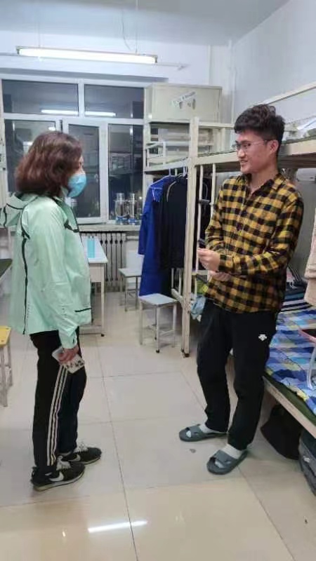 每到一处,杨书婕院长都要强调寝室用电安全、内务整理等事宜,对环境卫生较好、宿舍氛围活跃的宿舍进行表扬,对存在问题的寝室提出了整改建议和鼓励关切。尚天任老师与学生们就学业进展、未来规划、心理状态做了深入交流。本次走访寝室,进一步提高了同学们的安全意识,让同学们在校也能感受到“家”的温暖。