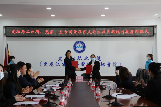 会上,校地双方交流讨论推动工作落实,明确提出工作安排,我院团总支书记姜玲老师与工力所社区负责人进行签约,下一步,我院团总支将进一步推进大学生社区实践工作,为社区输送青春力量,积极推动我院青年力量与社区的服务工作,共同提高目标,不断提高大学生服务社会的能力为社区发展贡献青春力量。