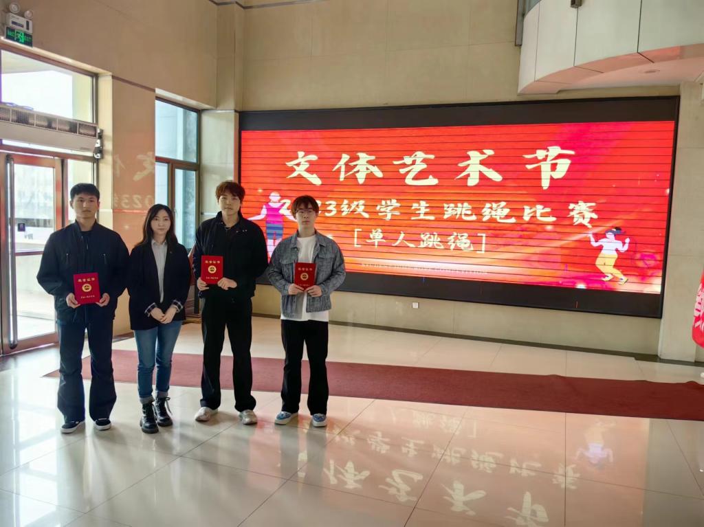 四月春色渐浓,伴随和煦春风,为丰富大学生的校园文化生活,活跃校园氛围,增强同学们的体育锻炼意识。jinnian金年会校团委于2024年4月11日中午12:00时,在学校操场举办“文体艺术节”2023级学生跳绳比赛。