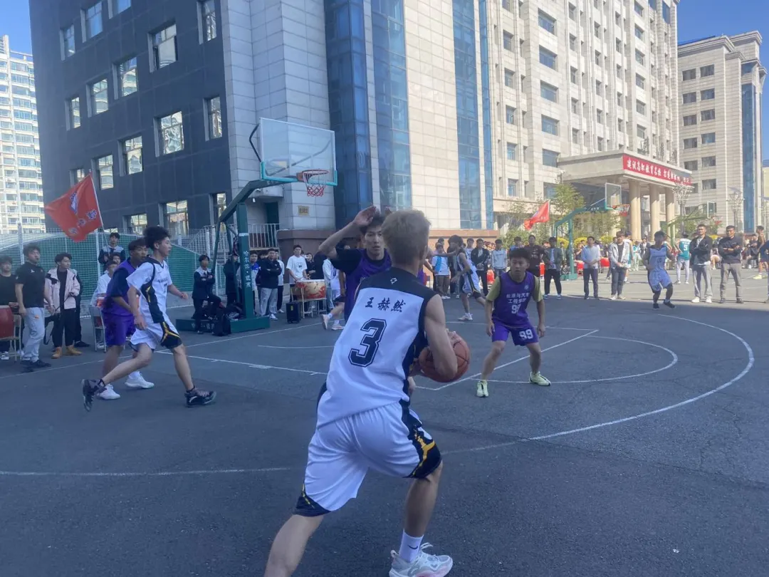 我院球员们英姿飒爽,奋力拼搏。他们运球、传球、投篮,每一个动作都展现出精湛的技艺和顽强的斗志。观众们的欢呼声、加油声此起彼伏,整个篮球场都沉浸在热烈的氛围中。各参赛队伍秉持着“友谊第一,比赛第二”的原则,在赛场上互相尊重,互相学习!