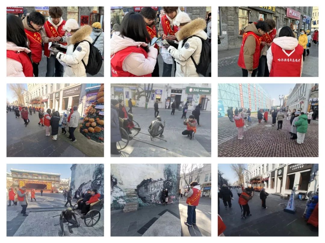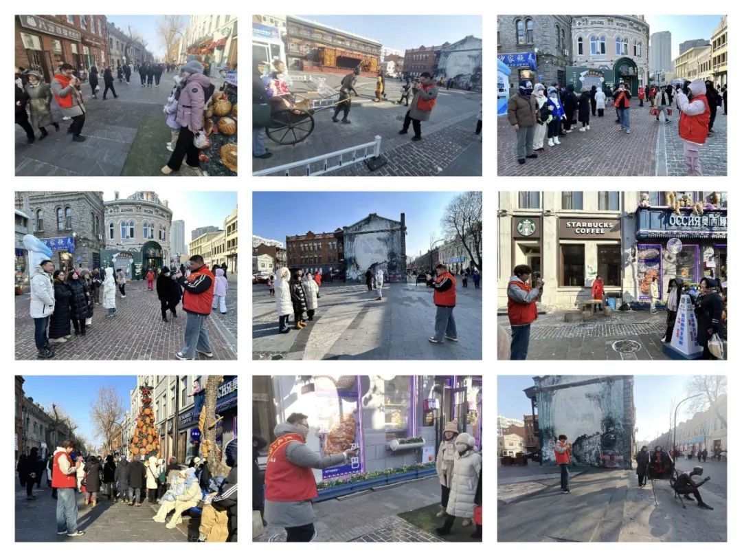 响应校团委的号召,助力亚冬会,以暖心传递人间温情,为助力街区的良好运营,传递温暖与关怀,智能制造技术学院团总支于2025年1月31日上午10:00时,由24级学生王帅、王嘉硕、任思宇,23级学生刘晨,吕福源,共五人组成的志愿服务队共同开展中华巴洛克步行街第三期志愿服务。
