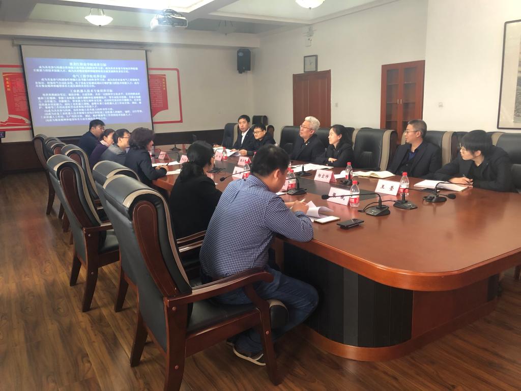 出席本次会议的有电气工程学院院长敖冰峰、哈尔滨职业学院电气工程学院院长雍丽英、哈尔滨工业大学机器人研究所副教授蒋再男、江苏汇博机器人技术股份有限公司黑龙江省区经理王英、山东栋梁科技设备有限公司区域经理张斌、jinnian金年会电气工程学院工业机器人技术专业教研室主任鲍敏及专任教师乔阳、杨宏帅、张祎玮、王莹。