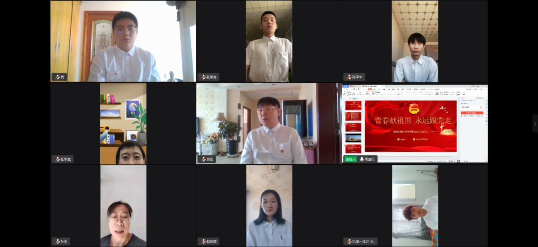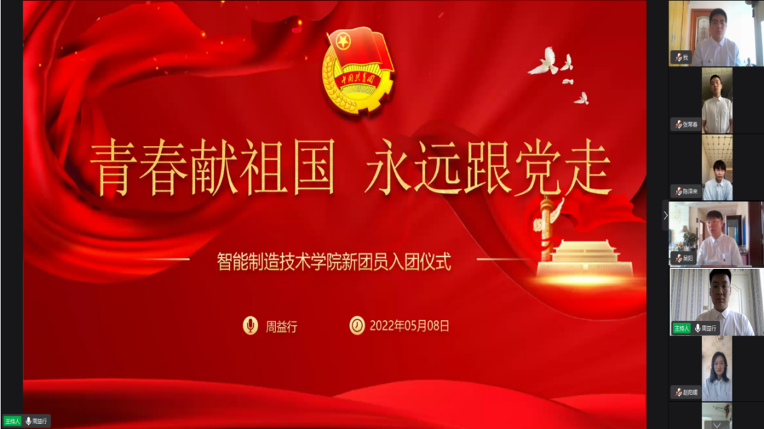 光辉的火炬,唤醒了民族的觉醒,壮丽的事业,激励着我们继往开来。2022年5月8日下午3.00智能制造技术学院团总支举办2022年新团员入团仪式。为大家介绍出席本次入团仪式的人员:党总支副书记李焕然、团总支书记姜玲、21级辅导员孙宇、张学慧、谭延宏、许磊、周利明、团总支学生副书记吴阳、周益行、团员代表陈思睿、大一新发展7名团员。本次入团仪式由团总支学生副书记周益行主持。