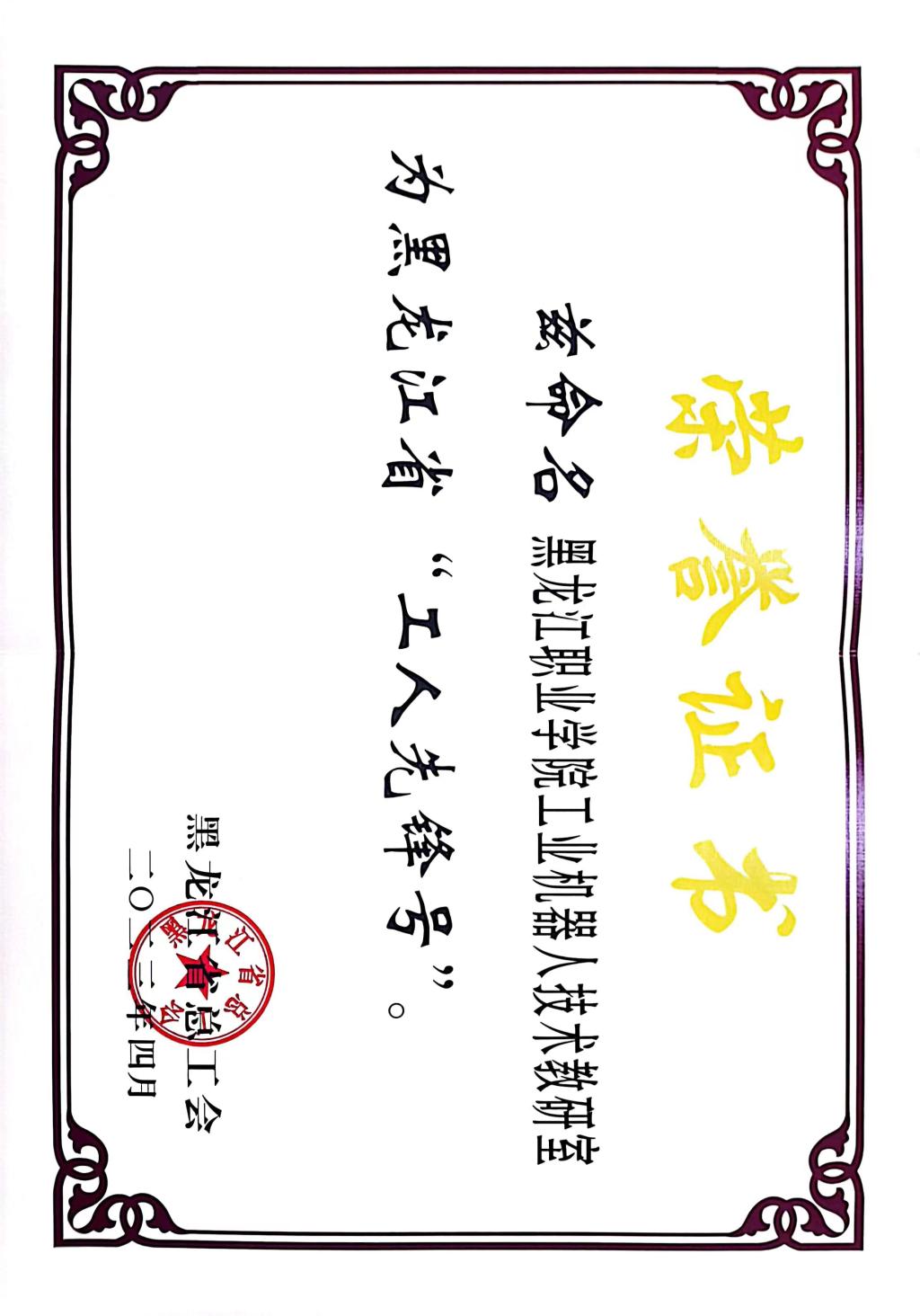 近日,在黑龙江省总工会组织开展的2023 年黑龙江省五一劳动奖和黑龙江省工人先锋号表彰中,授予金年会智能制造技术学院工业机器人技术教研室黑龙江省工人先锋号荣誉称号,此次评选,学校党委高度重视,校工会全程给予指导。