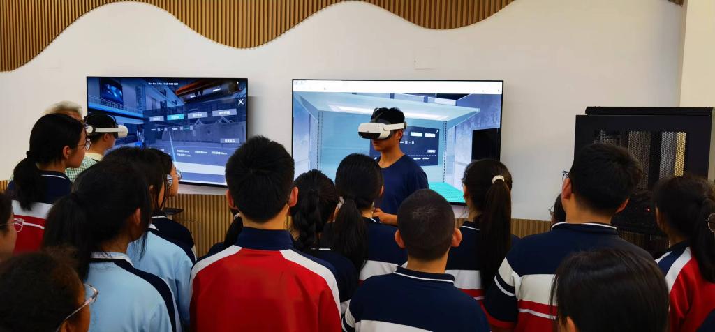 随后,孩子们有机会亲身体验了公共虚拟仿真实训中心的沉浸仿真实训室。在这里,他们通过社会主义核心价值观思政类课程,在虚拟的漫游场景中接受了沉浸式的红色教育,这种新颖的教学方式让他们倍感亲切和投入。