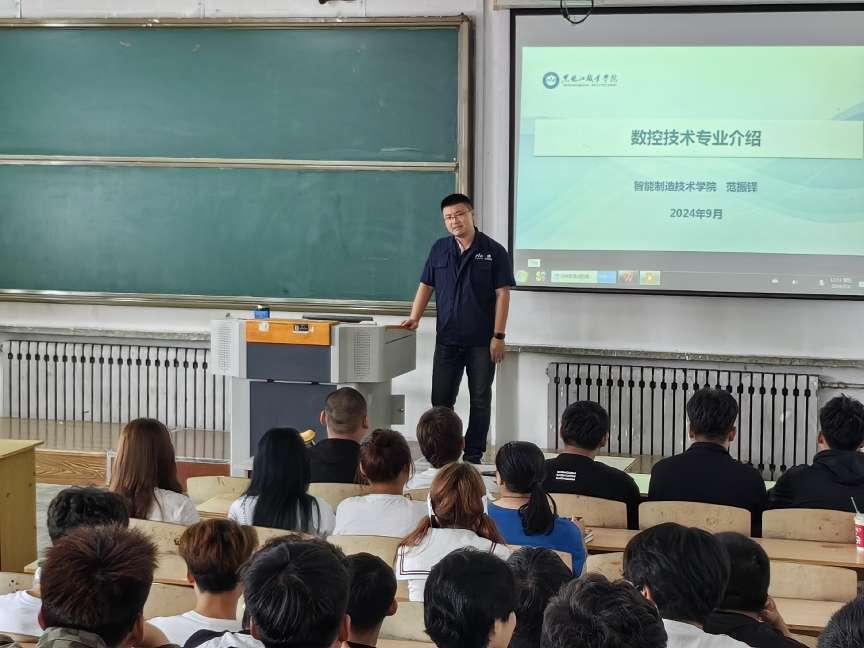 2024年9月6日下午,智能制造技术学院10个专业面向2024级新生开展了别开生面的专业介绍。本次活动各专业积极筹备、各显其能。工业机器人专业在专业介绍现场与江苏汇博机器人公司企业技术人员视频连线,让学生能够直观感受到企业真实生产场景;数控技术专业邀请优秀毕业生亲临专业介绍现场,为新同学讲述大学生活;工业互联网专业聘请航天科工集团航天云网黑龙江公司企业高管走进课堂,为学生答疑解惑。