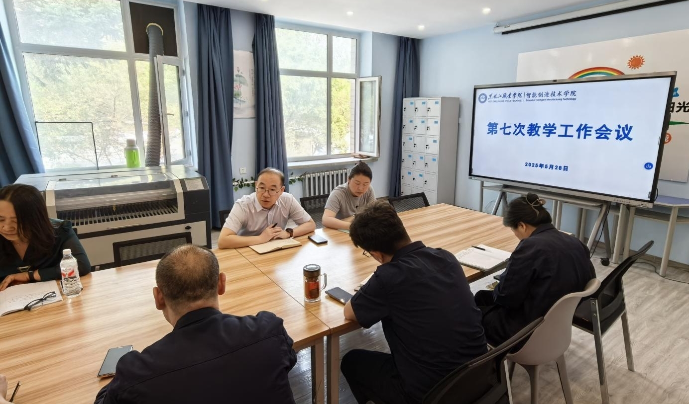 2025年5月28日,智能制造技术学院召开第七次教学工作会议,院长李子峰、副院长于雪梅、教学办主任、各教研室主任参会。