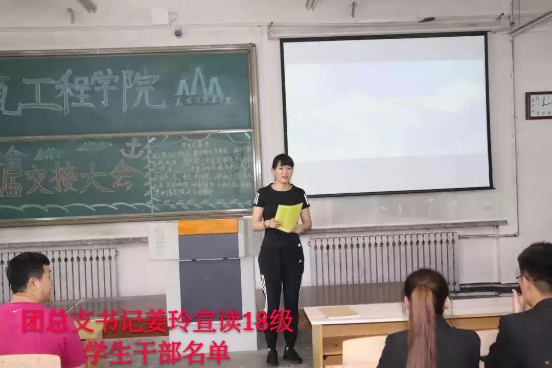 首先由文艺部部长马元野读开场词,然后由团总支书记姜玲宣读18级新任学生会干部名单并激励每一位学生干部积极工作。