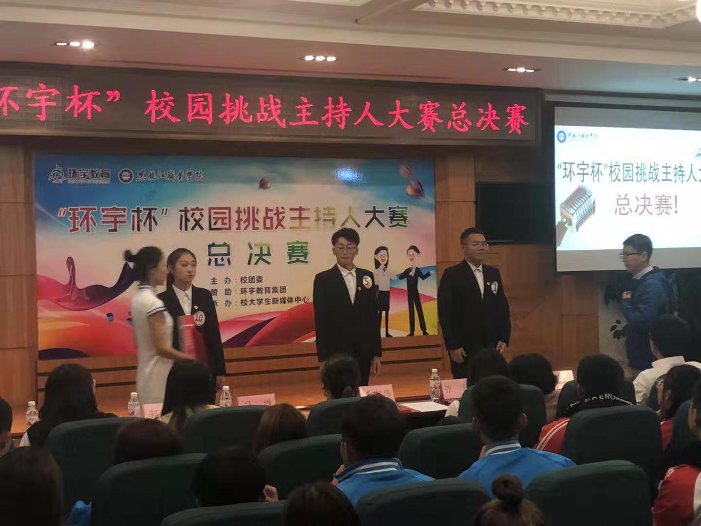为响应校团委的号召2019年10月23日15:20,在清华楼经济报告厅开展了“环宇杯”校园挑战主持人决赛,经过初赛、复赛激烈的角逐我学院刘永亮同学荣获“银话筒”奖项,其他同学也都发挥出了自己的实力,取得自己满意的成绩。