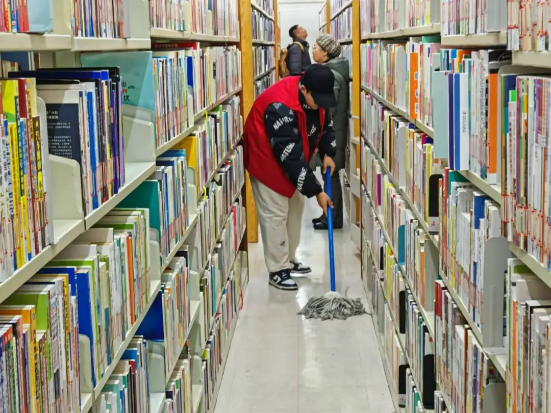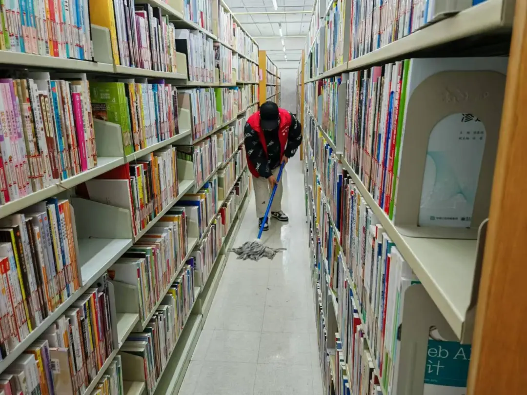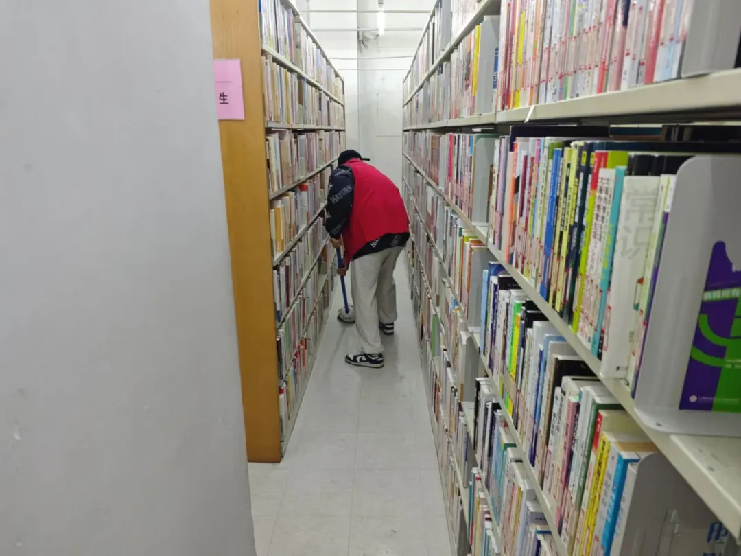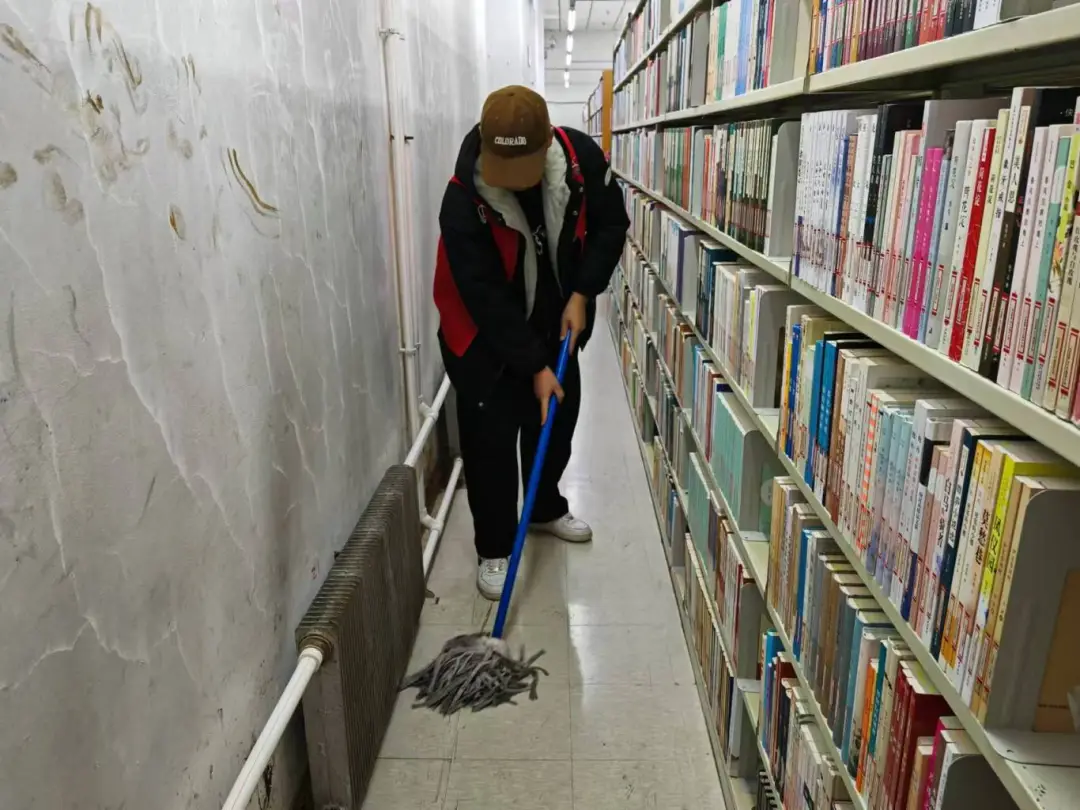 志愿服务期间,志愿者们积极参与,动作快捷,不偷懒不松懈,快速完成了分配给自己的任务,打扫馆内卫生,将所属的书架打扫得一尘不染,图书规律放整齐。
