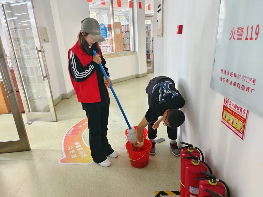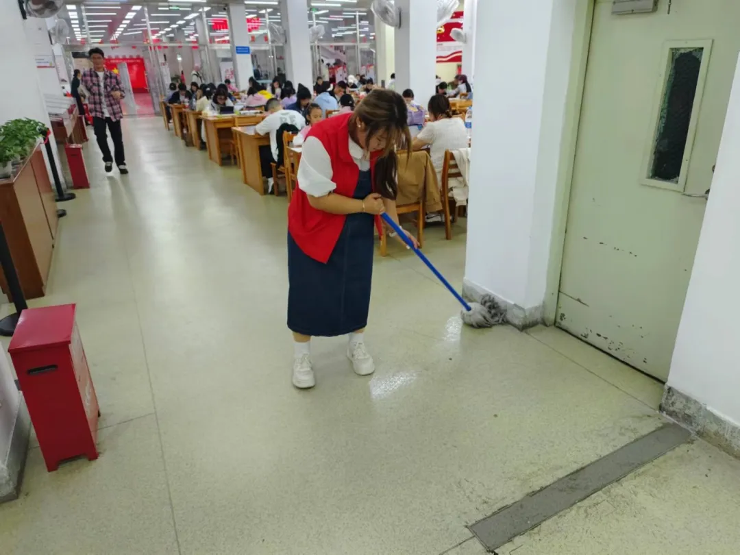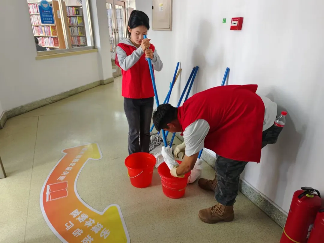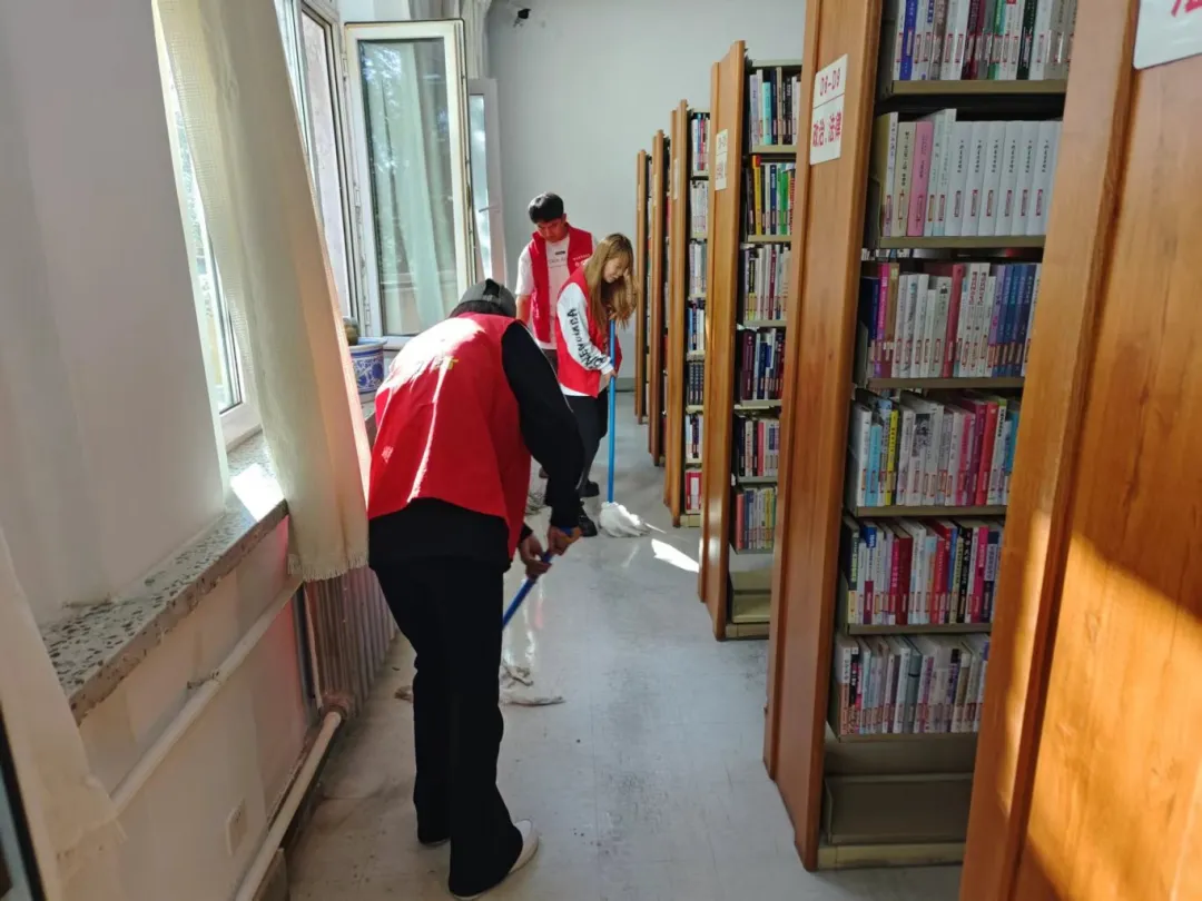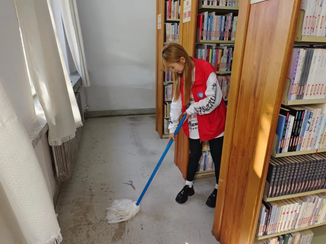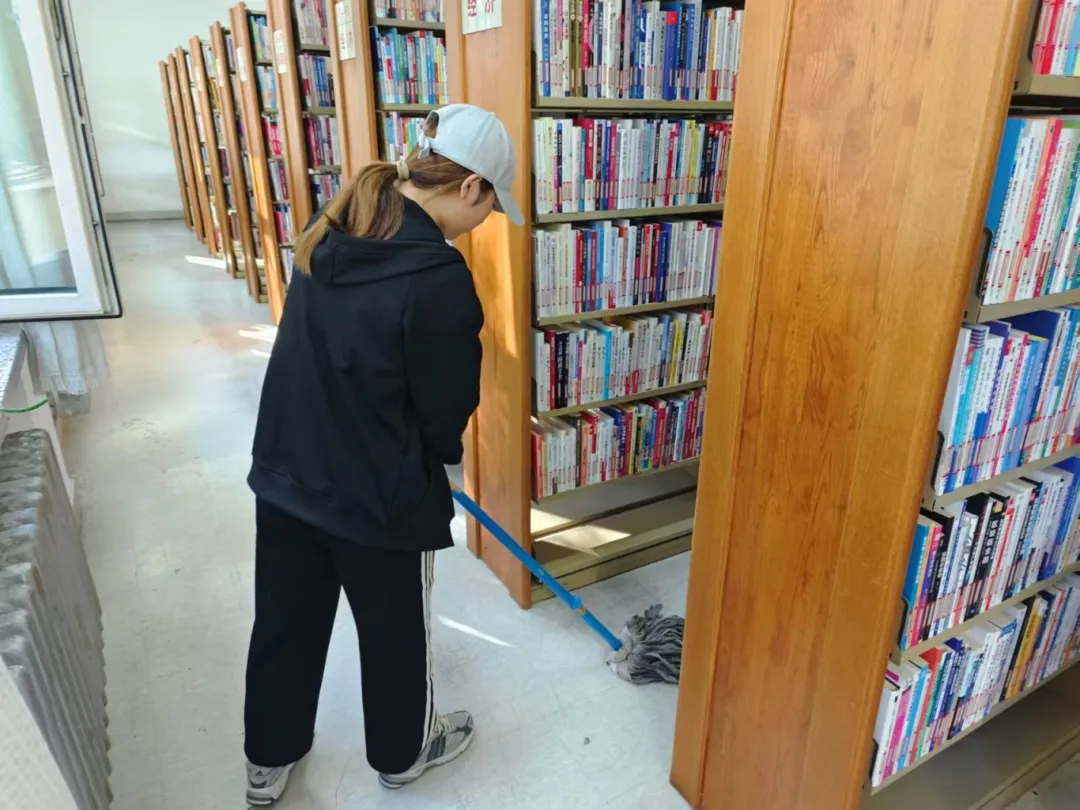 志愿服务期间,在管理员的带领下,志愿者们迅速投入到各自的岗位中,他们擦拭窗台,整理图书,清理地面。清理过程中,志愿者们展现出了高度的责任感和团队合作精神。他们认真细致地完成每一项任务,不仅为读者提供了便利,也为图书馆营造了一个更加舒适、整洁的阅读环境。