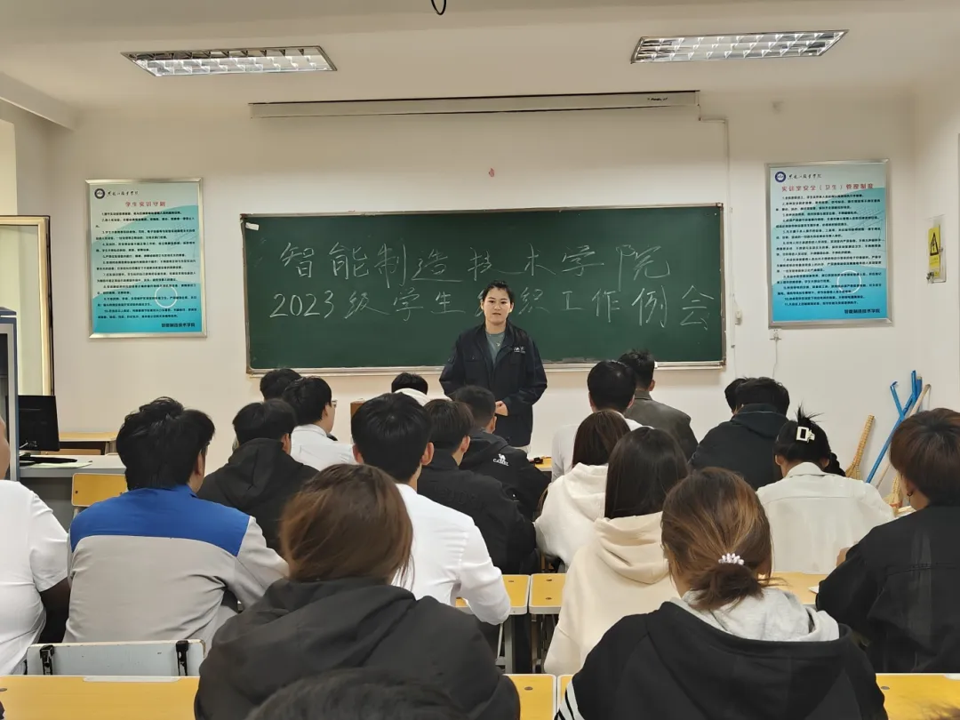 为更好发挥2023级学生组织能动性,更好地服务广大学生,加强学生组织建设。智能制造技术学院团总支于2024年10月14日中午12:00时,在工坊楼301室召开本学期2023级学生组织工作例会,2023级学生组织全体成员参加本次会议。