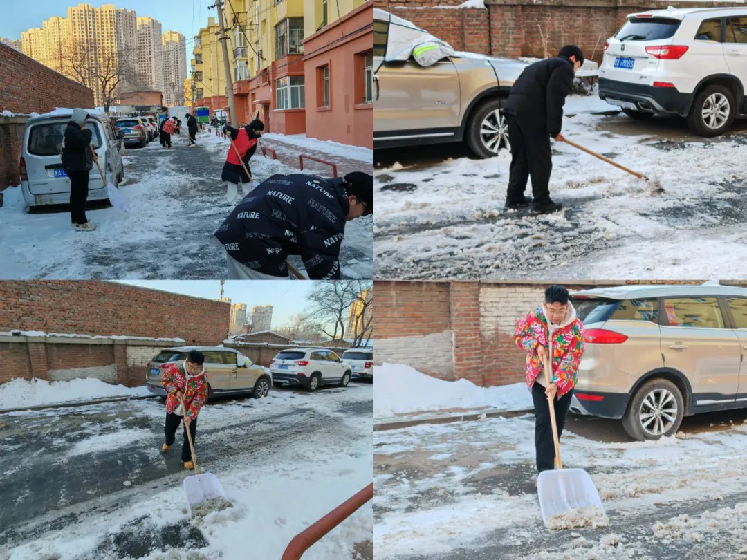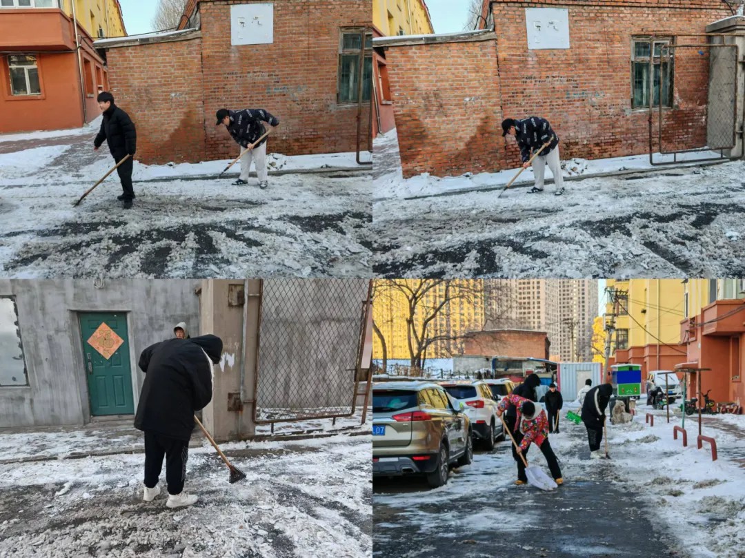 志愿者们纷纷手持铁锹、雪铲,热情饱满、不畏严寒、通力配合,团结协作,对路面的积雪进行清理。虽然天气寒冷,但是大家干劲十足,用自己的双手给居民带来了方便。经过一个多小时的共同努力,路面露出了原貌,切实地保障了居民出行安全。