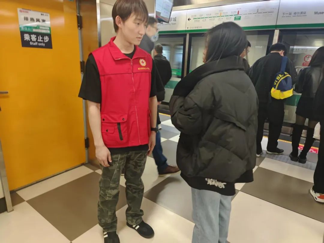 活动当日,身着红马甲的志愿者们朝气蓬勃,蓄势待发。按照地铁值班站长的精细分工,他们精准就位,牢记任务要点。随着早高峰的来临,人潮如织,志愿者们个个热情洋溢,用真诚的笑容迎接每一位步履匆匆的乘客,耐心解答疑问、协助搬运行李,在喧闹的地铁站中,他们宛如闪耀的星光,熠熠生辉。