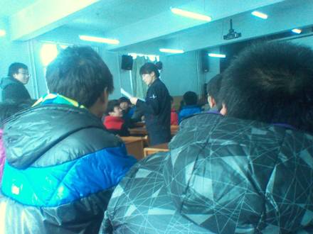 2013314上午90010级机电一体化班郭志强等5名同学来到东安航空发动机公司参加应聘,下面各图为我院学生参加公司组织的面试,图中招聘人员在认真倾听学员们的自我介绍。
