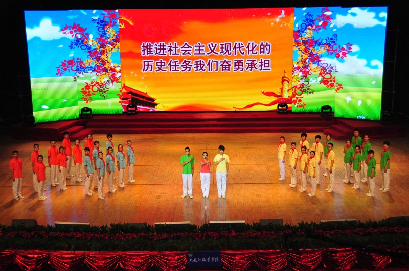 会议结束后,举行了以“腾飞龙职”为主题的文艺演出,有关领导、学院师生和企业代表同台庆祝jinnian金年会的成立和职业教育进园区项目启动。最后,在原中国歌剧院院长刘锡津教授的指挥下,全体合唱了由学院党委书记冯玉龙作词、刘锡津教授作曲的校歌--《龙职之歌》,将演出推向高潮。