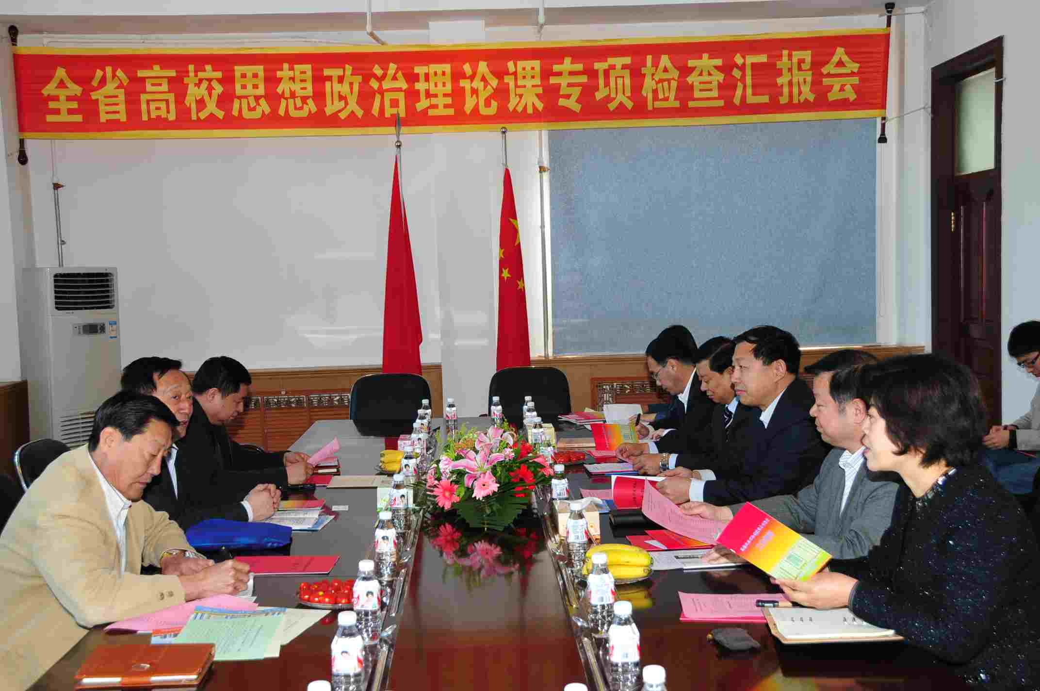 汇报会后,召开了教师座谈会、学生座谈会,检查组实地考查了思想政治理论课教学部办公条件,查阅了档案资料,听取了教师授课。