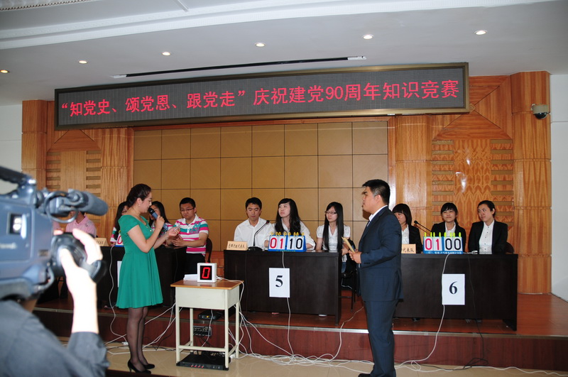 为迎接建党90周年,宣传党的光荣历史和丰功伟绩,鼓舞和激励广大党员和师生创先争优,推进学院国家骨干高职院校建设的顺利实施,6月8日,学院举办了以“知党史、颂党恩、跟党走”为主题的庆祝建党90周年知识竞赛活动。学院副院长刘公远、党委副书记张玉山、纪检委书记周莲香等同志出席并观看了竞赛,学院有关部门负责人参加了此次活动,来自全院各党总支(支部)的五支教工代表队和各分院的三支学生代表队共八支队伍进行了紧张激烈的比赛。