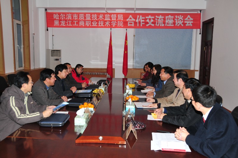 黑龙江工商职业技术学院与哈尔滨市质量技术监督局合作交流会于11月18日在900会议室召开。学院院长赵继会、副院长刘公远、哈尔滨市质量技术监督局副局长陈立辉、处长于冶参加会议,双方就开展深度合作进行了交流。教务处、实习实训中心及热能与环保工程系相关人员参加会议。