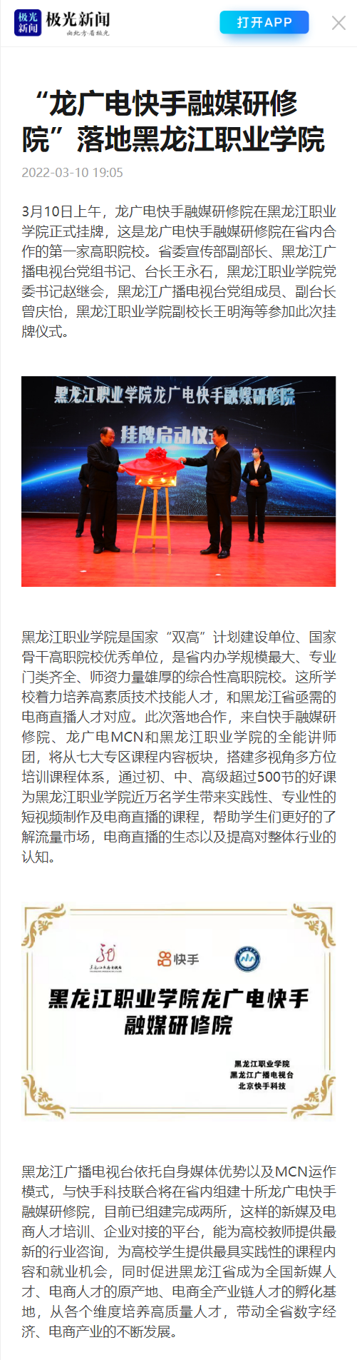 上一篇:【今日头条】“龙广电快手融媒研修院”落地jinnian金年会
