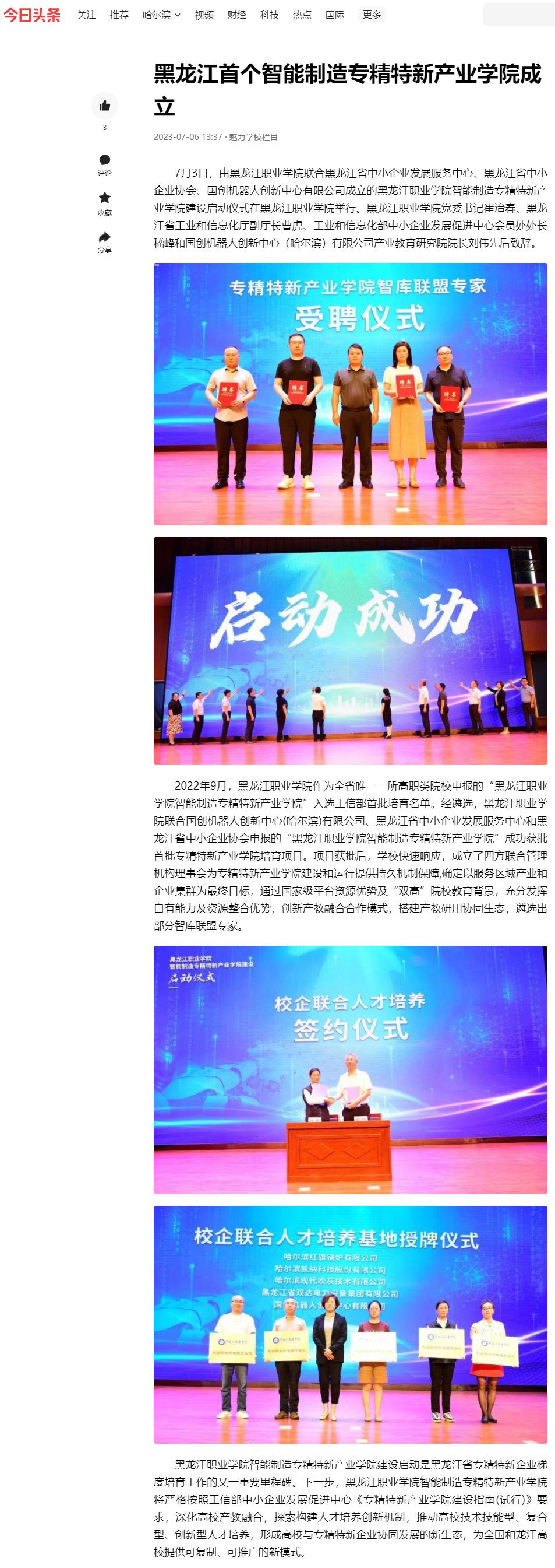 上一篇:【搜狐新闻】黑龙江首个智能制造专精特新产业学院成立